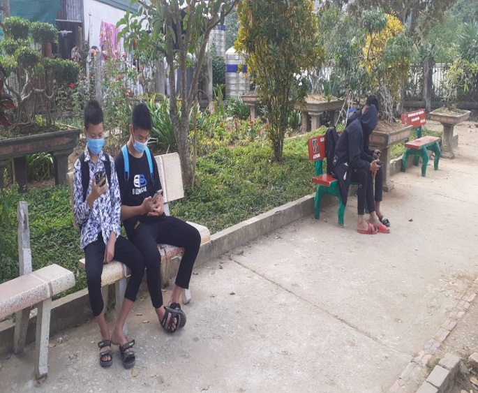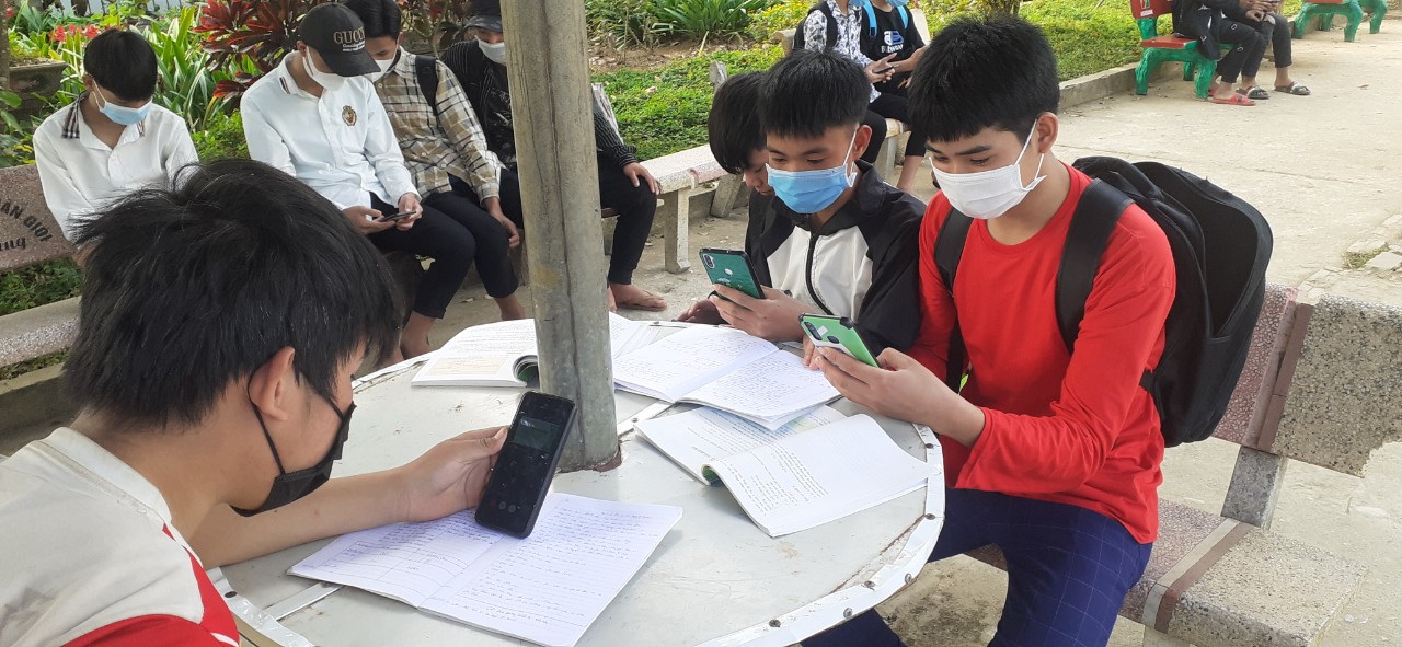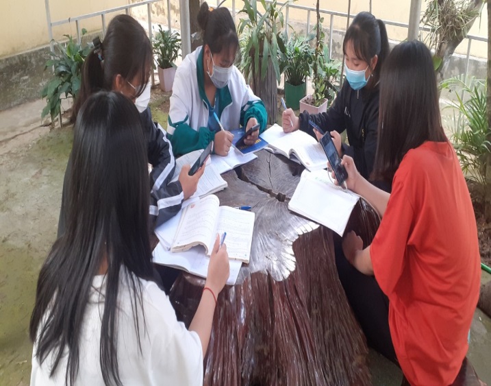 (Học sinh sử dụng Smasphone để học trực tuyến độc lập và theo nhóm)