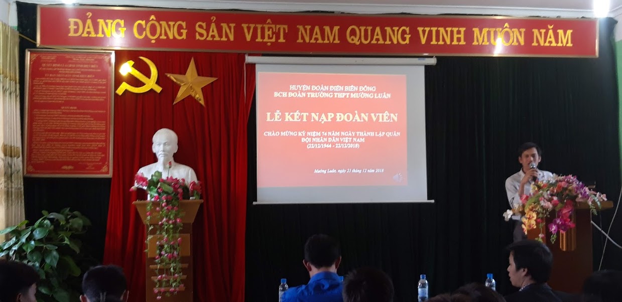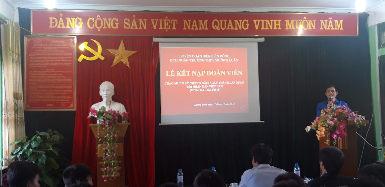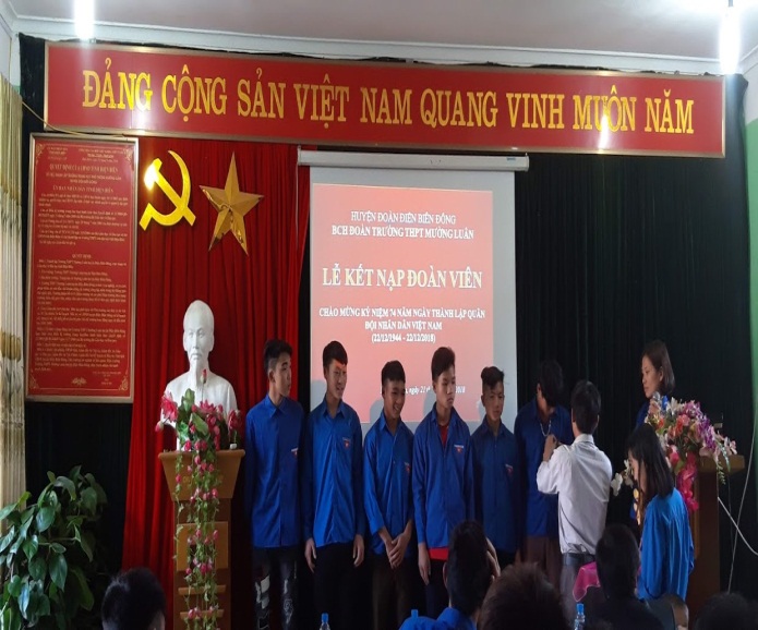 HOẠT ĐỘNG KỶ NIỆM NGÀY THÀNH LẬP QĐNDVN, NGÀY HQPTD 22/12/2018 CỦA ĐOÀN TRƯỜNG THPT MƯỜNG LUÂN Căn cứ điều lệ Đoàn TNCS Hồ Chí Minh Thực hiện Chương trình số: 07-CTr/HĐTN ngày 12 tháng 09 năm 2018 của huyện Đoàn Điện Biên Đông về Chương trình công tác Đoàn và phong trào Thanh niên trường học năm 2018 – 2019. Căn cứ vào Kế hoạch nhiệm vụ công tác đoàn và phong trào thanh niên năm học 2018 – 2019 của BCH đoàn trường THPT Mường Luân nhiệm kỳ 2018 – 2019. Căn cứ vào kế hoạch số: 45-KH/ĐTNTHPTML ngày 04 tháng 12năm 2018 của BCH đoàn trường. Ban chấp hành Đoàn trường THPT Mường Luân xây dựng kế hoạch mở lớp cảm tình Đoàn và kế hoạch kết nạp lớp Đoàn viên nhân dịp chào mừng kỷ niệm 74 năm ngày thành Quân đội Nhân dân Việt Nam (22/12/1944 – 22/12/2018) Đây là một dịp để các ĐVTN được học tập, khẳng định về mặt nhận thức về người Đoàn viên. Nhân dịp này các đồng chí ĐVTN được học tập ba nội dung chương trình cơ bản: