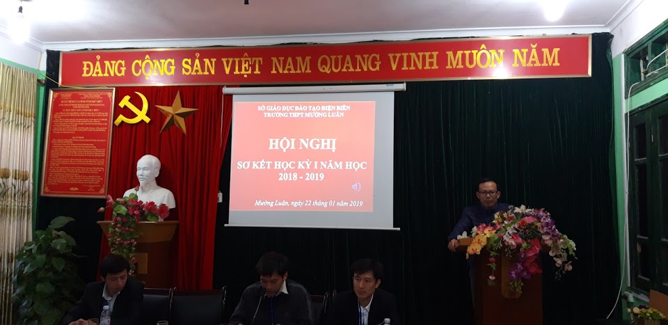 Ngày 22 tháng 01 năm 2019, trường THPT Mường Luân tổ chức Hội nghị sơ kết học kỳ I và đề ra phương hướng nhiệm vụ học kỳ II năm học 2018- 2019. Thành phân tham dự Hội nghị gồm Ban giám hiệu, giáo viên, cán bộ công nhân viên.