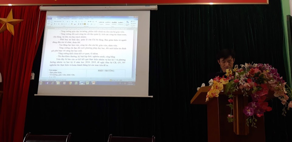 Hội nghị thông qua báo cáo sơ kết học kỳ I năm học 2018- 2019, qua báo cáo đã thể hiện đầy đủ kết quả thực hiện nhiệm vụ của các tổ chức, các hoạt động của nhà trường, đánh giá được những mặt đã làm được, những tồn tại, yếu kém và đề ra các nhiệm vụ của học kỳ II.