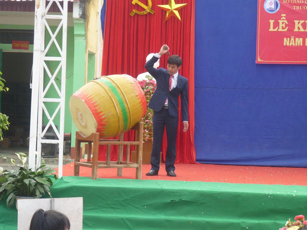 Th.S Trần Đình Quang - Hiệu trưởng nhà trường đánh trống khai trường