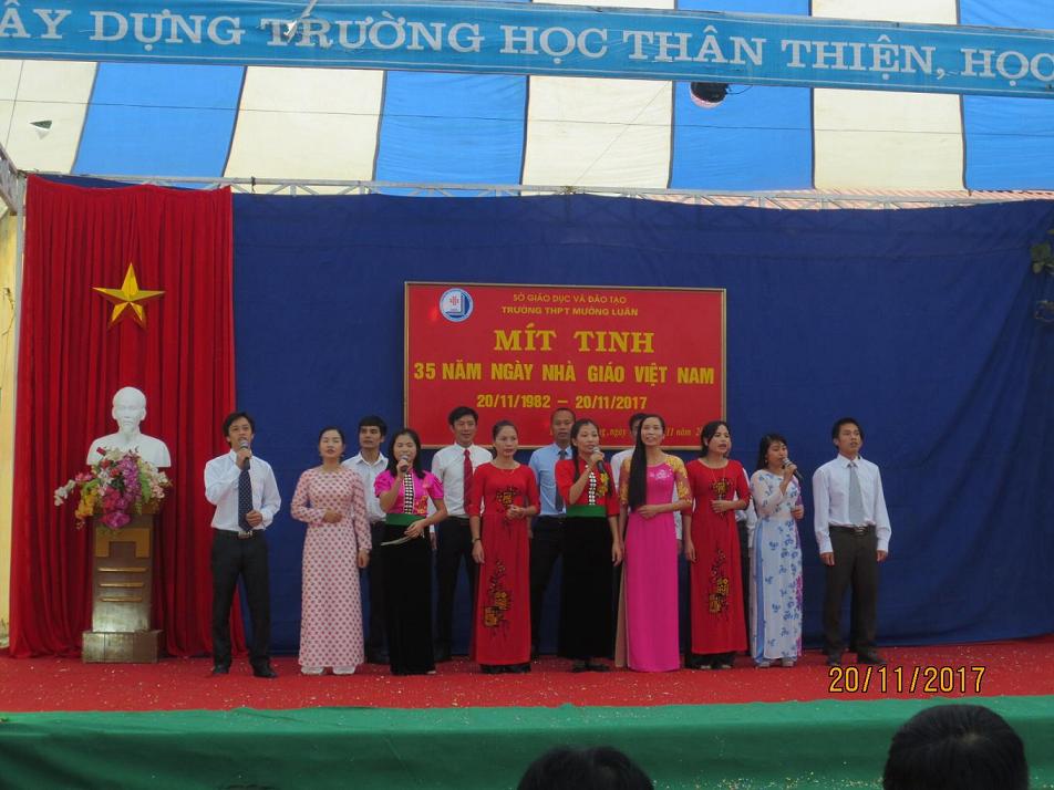 Lễ mít tinh kỷ niệm 35 năm ngày Nhà giáo Việt Nam, tôn vinh những người làm nghề trồng người tại trường THPT Mường Luân đã đón nhận được tình cảm sâu sắc của các cấp lãnh đạo và đông đảo học sinh. Các thầy cô giáo nhà trường sẽ luôn quan tâm giúp đỡ và ngóng trông những bước đi trên đường đời của các em học sinh, cả bây giờ và mai sau. Những thành tích đạt được trong học tập và trong cuộc sống của mỗi học sinh là những món quà vô giá mà những người "đưa đò" sẵn sàng đón nhận.