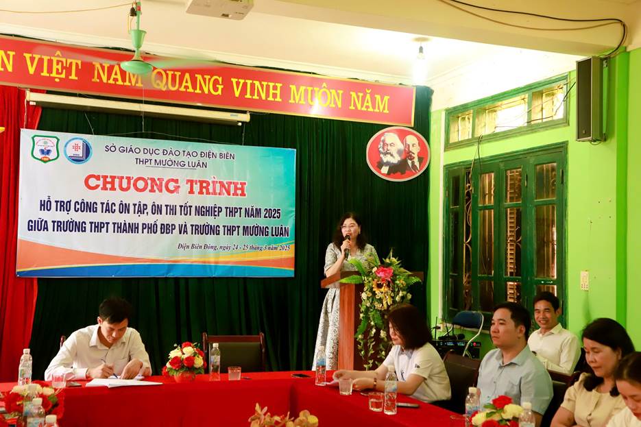 Trước đó ngày 17/03/2025 Ban giám hiệu và giáo viên ôn thi TNTHPT trường THPT Mường Luân đã về dự Hội thảo về công tác ôn tập, ôn thi tốt nghiệp THPT năm 2025 tại trường THPT Thành phố Điện Biên Phủ. Qua đó giáo viên ôn thi TNTHPT của 07 môn (Ngữ văn, Toán, Vật lí, Hóa học, Sinh học, Lịch sử, Địa lí) của trường THPT Mường Luân đã được dự giờ, học tập kinh nghiệm các tiết dạy học, ôn thi TNTHPT qua các tiết giảng dạy thực tế của thầy cô trường THPT thành phố Điện Biên Phủ. Và được nghe những tham luận về công tác quản lí, ôn tập, ôn thi tốt nghiệp THPT năm 2025.
