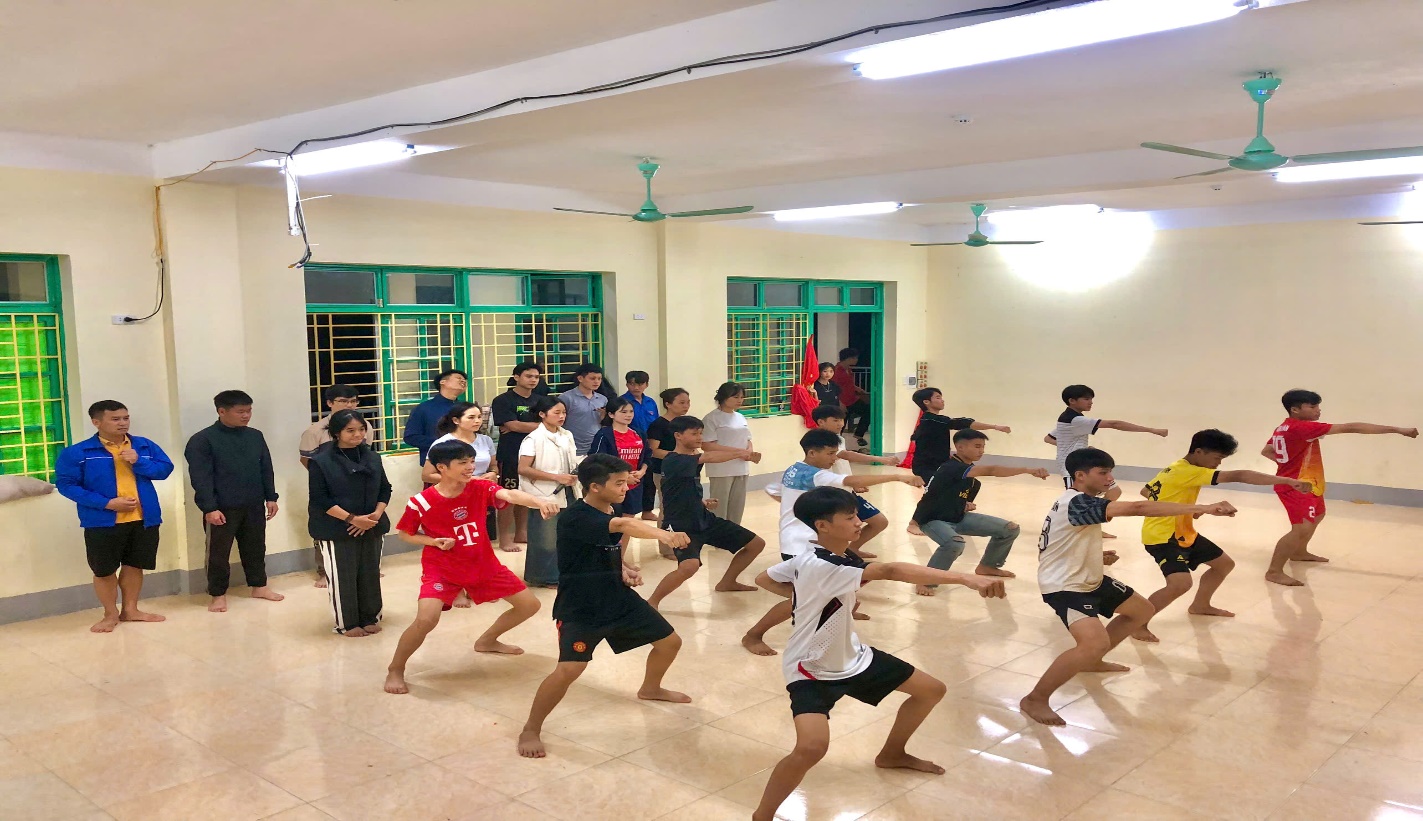 Thầy và trò hăng say tập luyện, chuẩn bị cho đêm giao lưu văn nghệ.