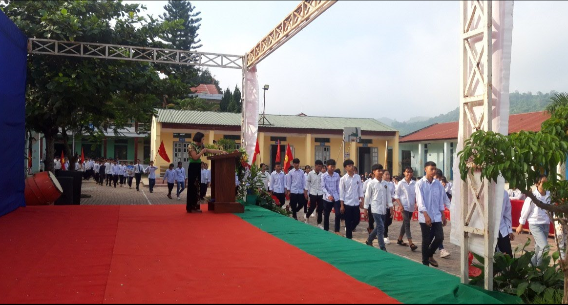 Lễ khai giảng được tổ chức trên tinh thần gọn nhẹ, ý nghĩa với các nội dung: văn nghệ, đón học sinh lớp 10, đọc thư chúc mừng của Tổng Bí thư, Chủ Tịch nước Nguyễn Phú Trọng, diễn văn khai giảng, trao thưởng và tặng sách giáo khoa cho học sinh có hoàn cảnh đặc biệt khó khăn.