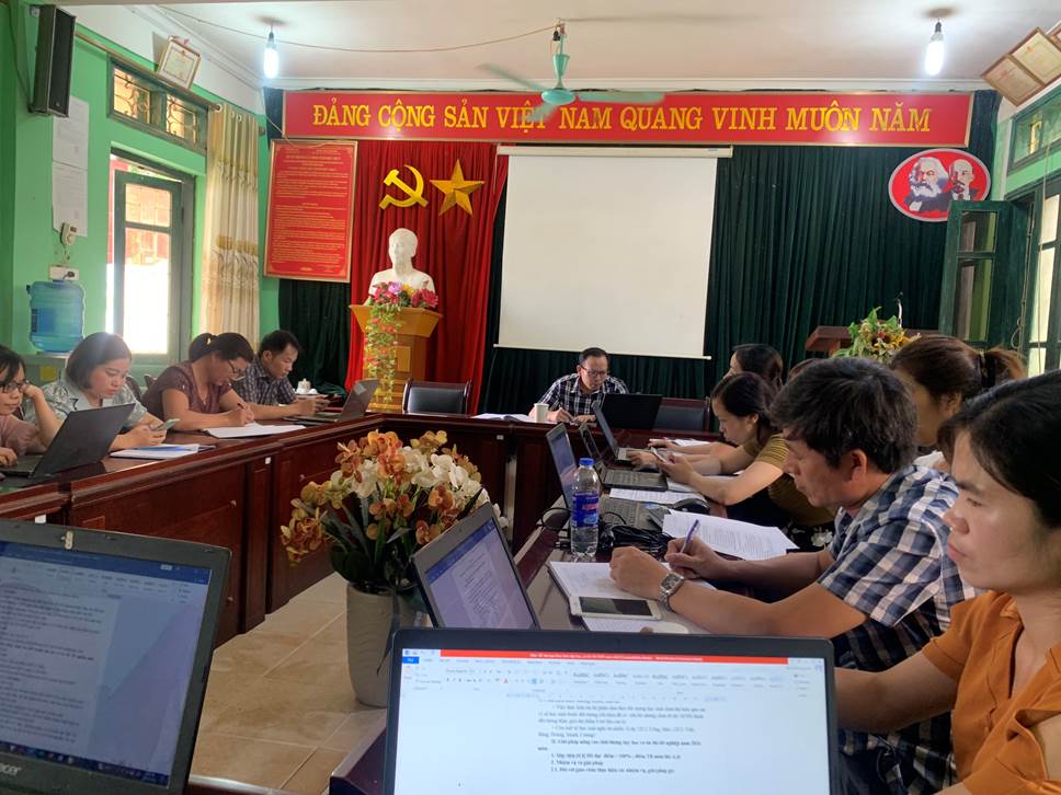 Buổi sinh hoạt chuyên môn có sự tham gia của thầy Hà Văn Tuân phó bí thư Chi bộ, phó Hiệu trưởng nhà trường và tất cả giáo viên dạy 09 môn thi tốt nghiệp THPT trong nhà trường